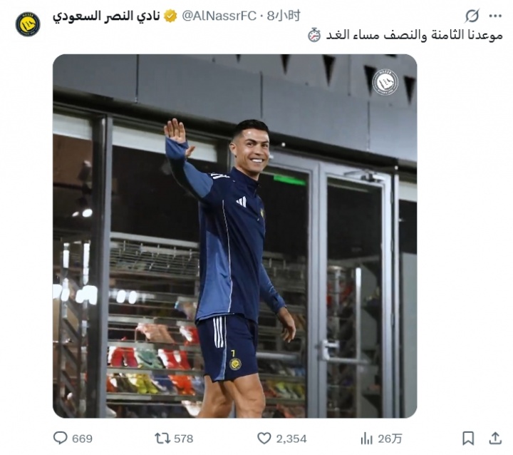 这则消息得到了部分沙特媒体的转载,但真实性有待考究。需要指出的是,利雅得胜利发布的最新训练动态显示,C罗正常参加了球队训练。